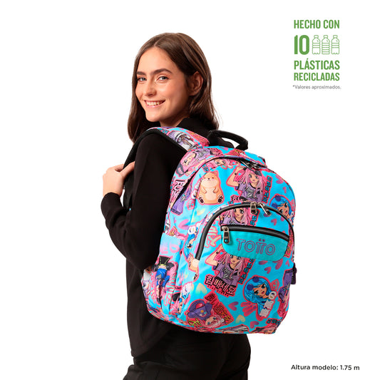 Mochila Escolar Acuarela RPET Azul Anime Girls