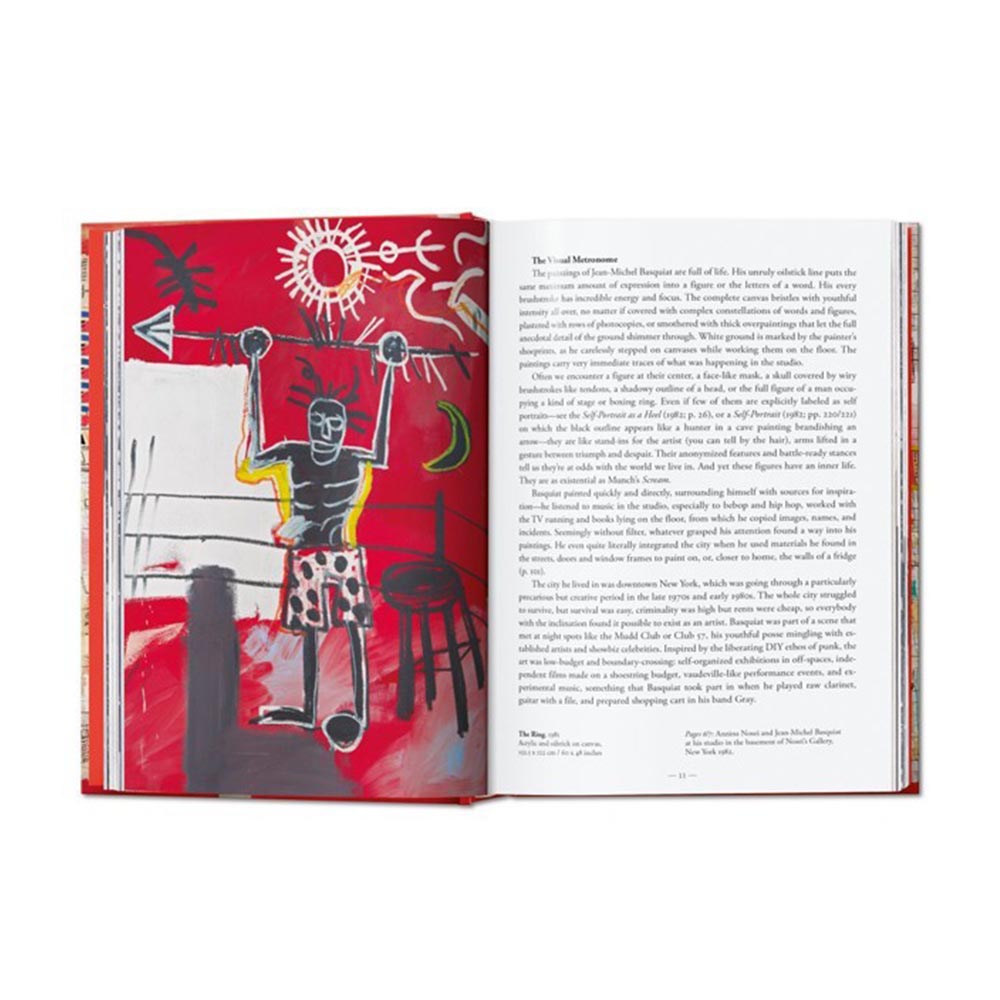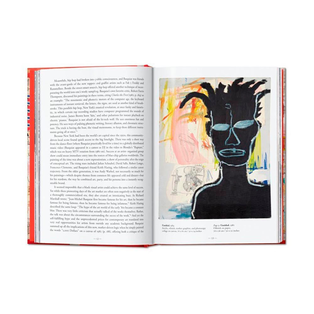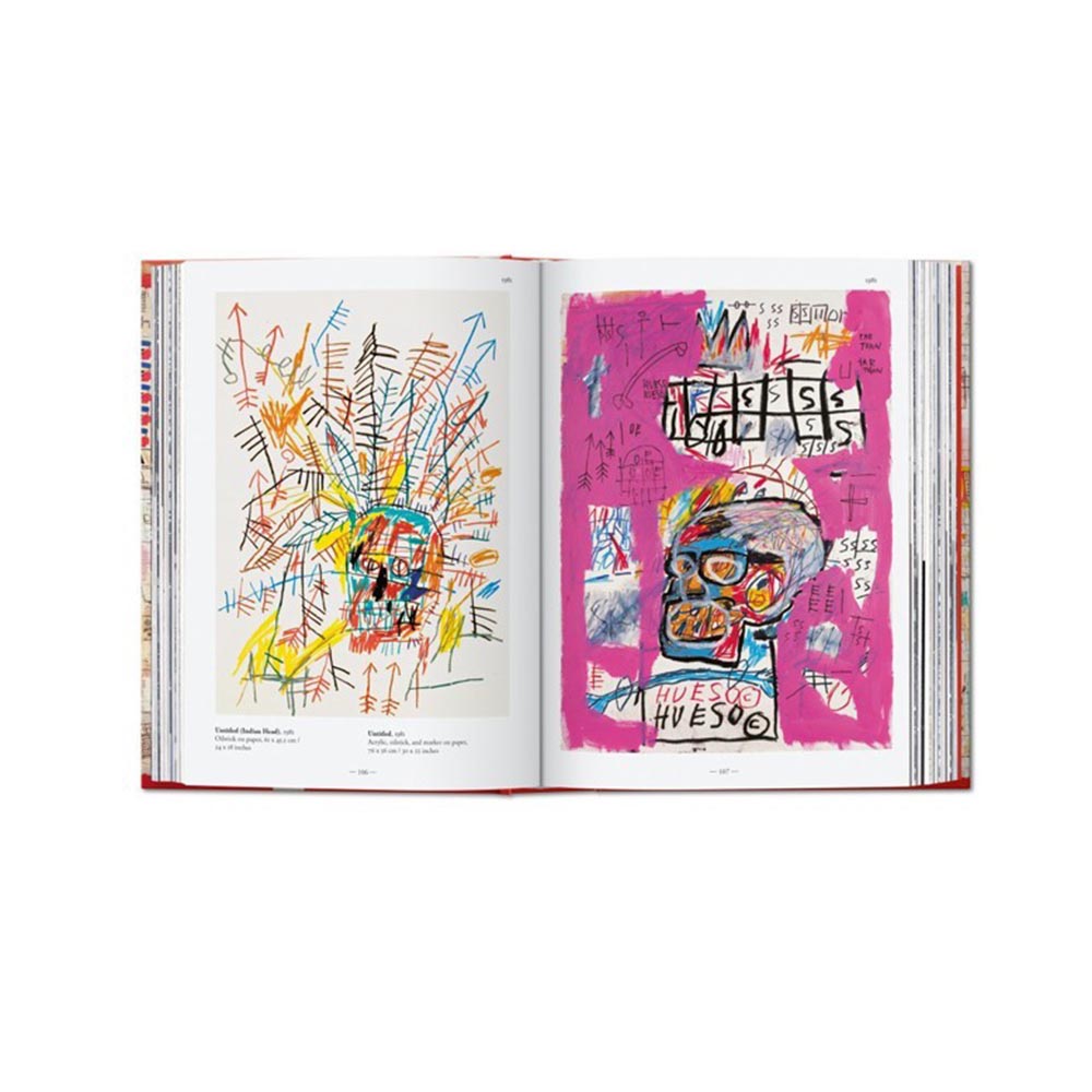 La leyenda de Jean-Michel Basquiat (1960-1988) continúa intacta. Símbolo del Nueva York de la década de 1980, el artista inició su carrera a finales de la década de 1970 bajo el seudónimo SAMO llenando las paredes de la ciudad con pintadas que contenían mensajes mordaces y fragmentos de poemas. Formó parte de una escena underground en pleno auge formada por todo tipo de artistas que se dedicaron a las artes plásticas, el gratifi, el hip-hop, el post-punk y el cine amateur. Basquiat, pintor con una potente voz personal, no tardó en triunfar en entornos más convencionales y expuso en galerías de todo el mundo. Su estilo expresivo se basaba en figuras rudimentarias a las que añadía palabras y frases. Publicado originalmente en edición XXL, este acercamiento inédito al arte de Basquiat está disponible ahora en un volumen compacto y accesible para celebrar el 40 aniversario de TASCHEN. A través de reproducciones impecables de sus pinturas, dibujos y esbozos más destacados, podrá admirar al detalle los complejos signos y crípticos garabatos del artista y profundizar en su mundo gracias a capítulos organizados por años y profusamente ilustrados, que recorren la vida de Basquiat con citas del propio artista y reseñas que aportan al lector tanto una perspectiva personal como del contexto histórico.