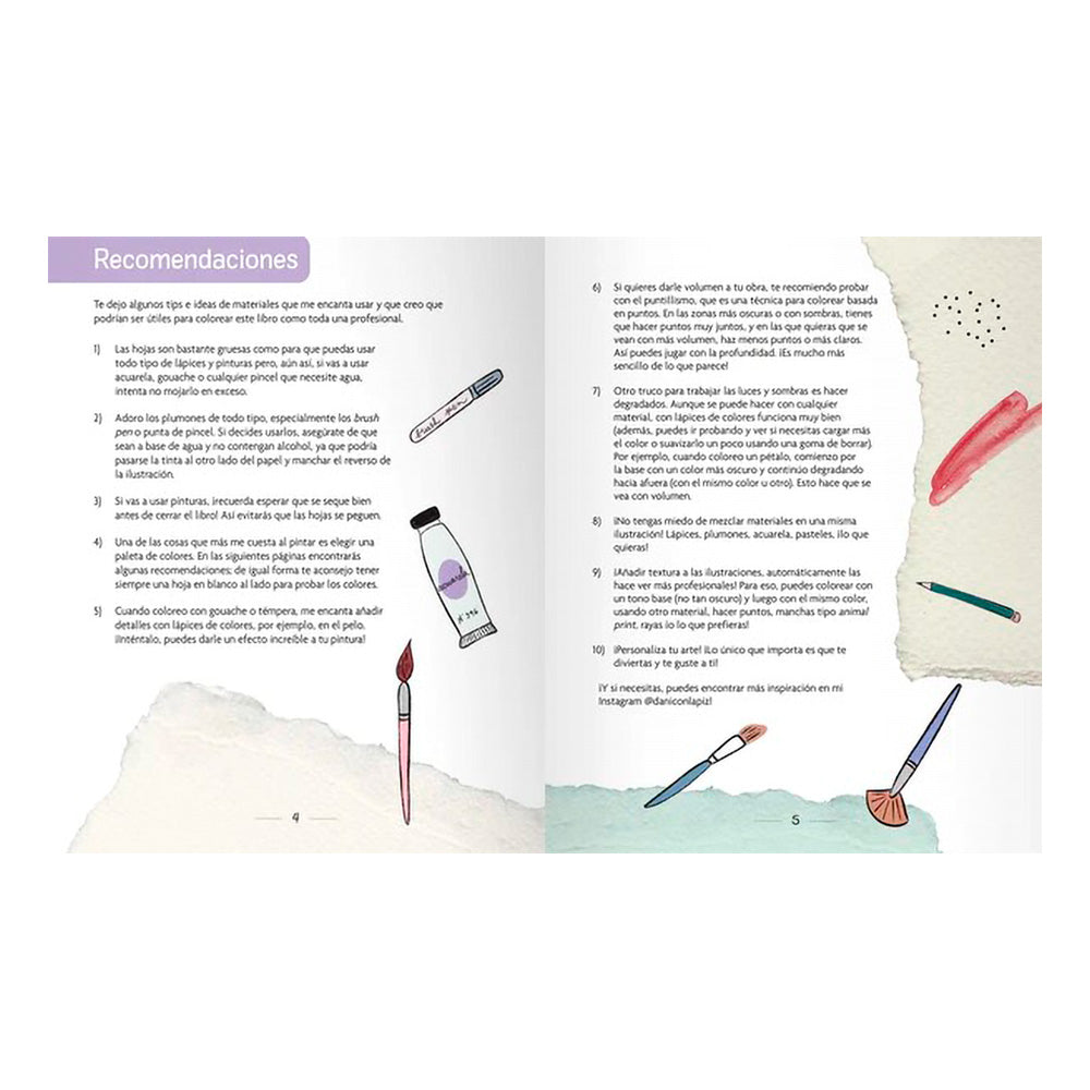 En este libro, comparte los materiales que suele utilizar en sus ilustraciones -plumones, temperas, acuarela, guache, pasteles-, además de técnicas de volumen y degradado, trucos para trabajar las luces y sombras, y métodos para aplicar una serie de texturas con las que podrás personalizar tus creaciones.