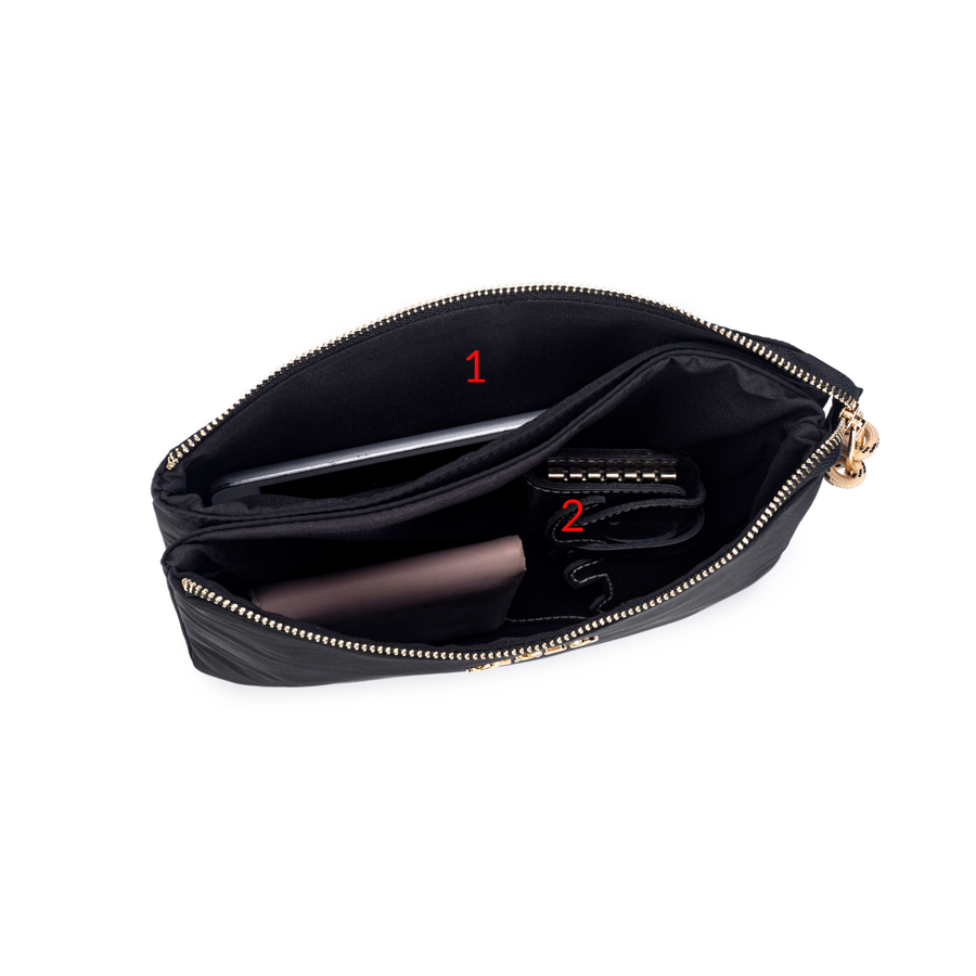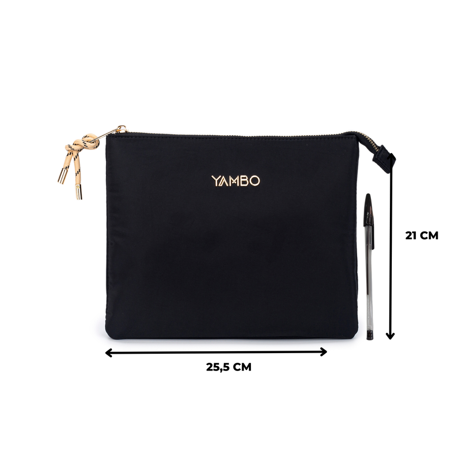 Está confeccionada con Nylon, y cuenta con dos amplios bolsillos para guardar tu maquillaje, skin care, accesorios, bloqueadores y más!