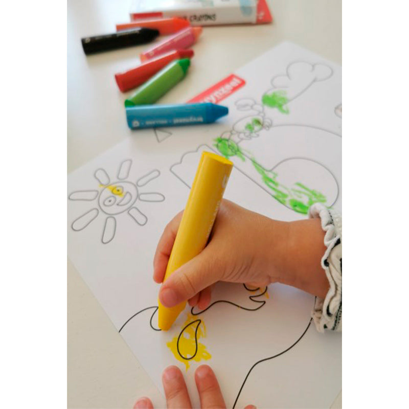 Las ceras extra gruesas de Bruynzeel están especialmente diseñadas para las manos de los más pequeños. Las ceras son blandas y miscibles con agua, para crear aún más obras de arte. ¿Te manchaste accidentalmente la ropa con una cera? ¡No hay problema, se lava fácilmente! El estuche contiene 8 ceras de los colores más populares.