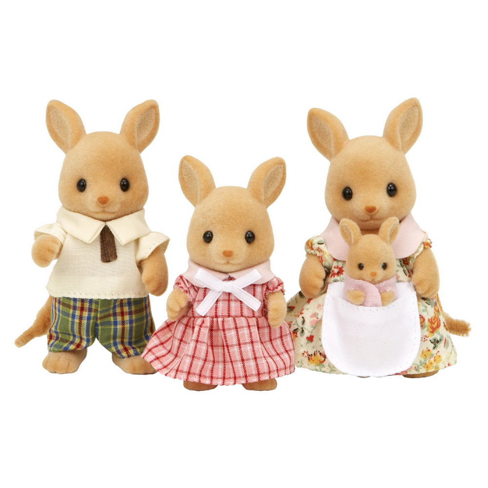 Familia canguros, de seguro la familia más inseparable de la villa Sylvanian. Incluey e 4 figuras, Papá, mamá , hermano y hermana con ropa de tela extraíble. Para niños a partir de 3 años. Desde 1985 Sylvanian Families enamora y entretiene a personas de todo el mundo. Pertenece a un género nostálgico de juguete que atrae a un amplio rango de edades. Basado en tres conceptos: Naturaleza, Familia y Amor, los niños pueden explorar el poder de la imaginación y aprender a cuidar y a compartir con otros.