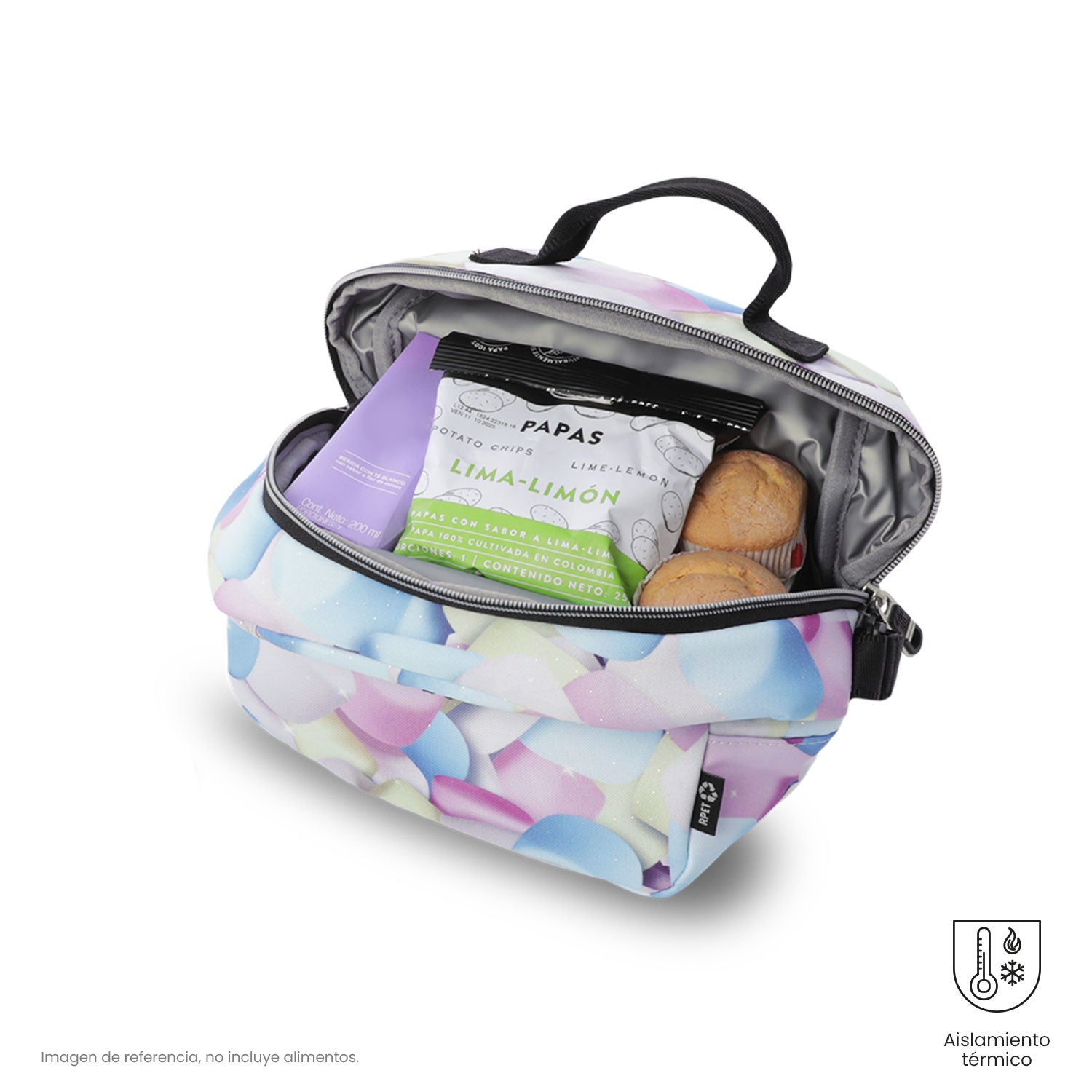 ¡Haz que cada almuerzo sea especial! La lonchera Borrador Glitter, fabricada con 3 botellas recicladas, aproximadamente, cuenta con tecnología térmico y mantiene la temperatura hasta por 5 horas. Incluye recipientes plásticos para mayor practicidad, con correas ajustables y pasador para sistema de ruedas, además de ser repelente a líquidos y fácil de limpiar. ¡Consíguela ahora mismo!
