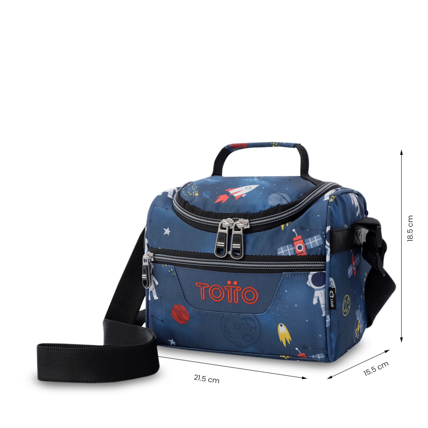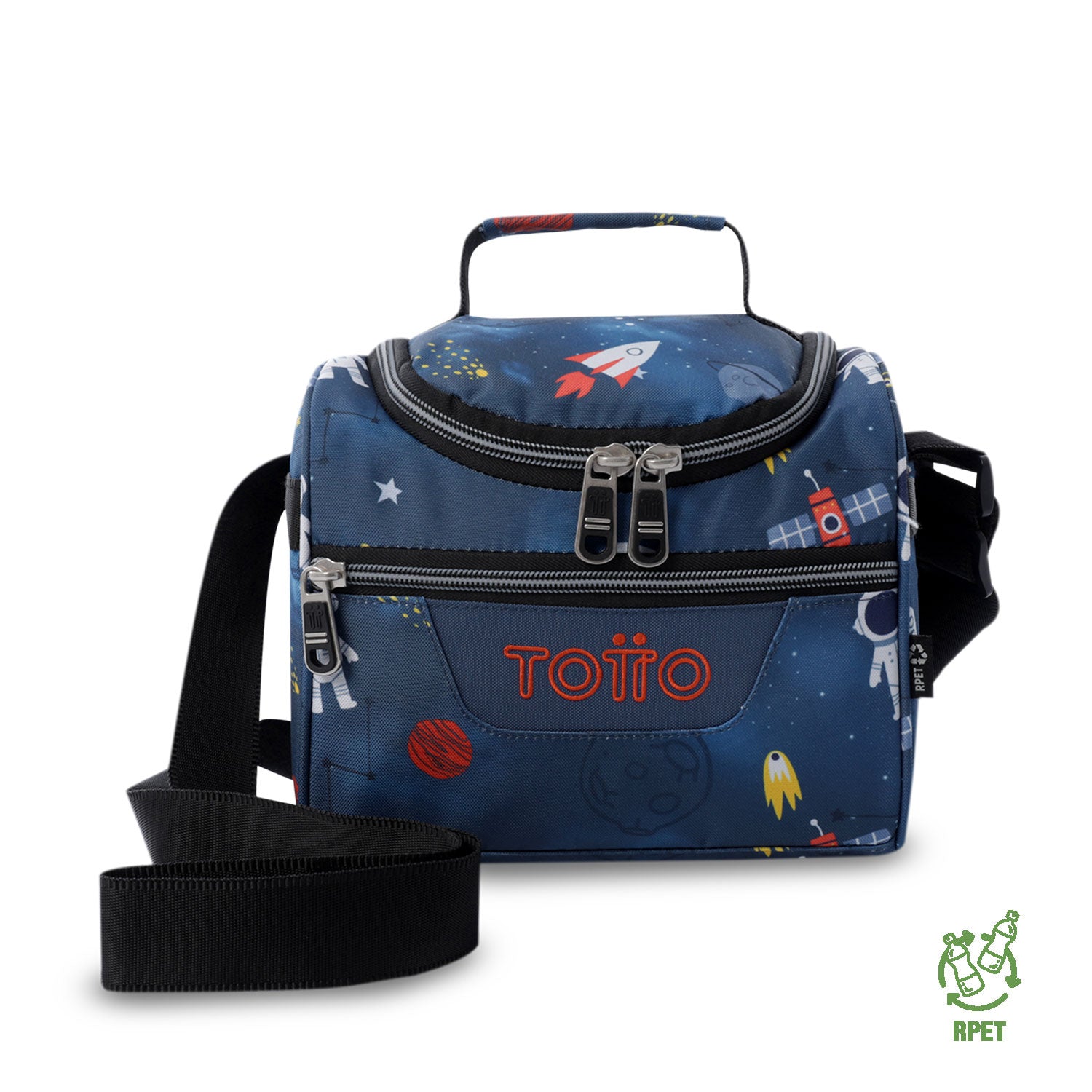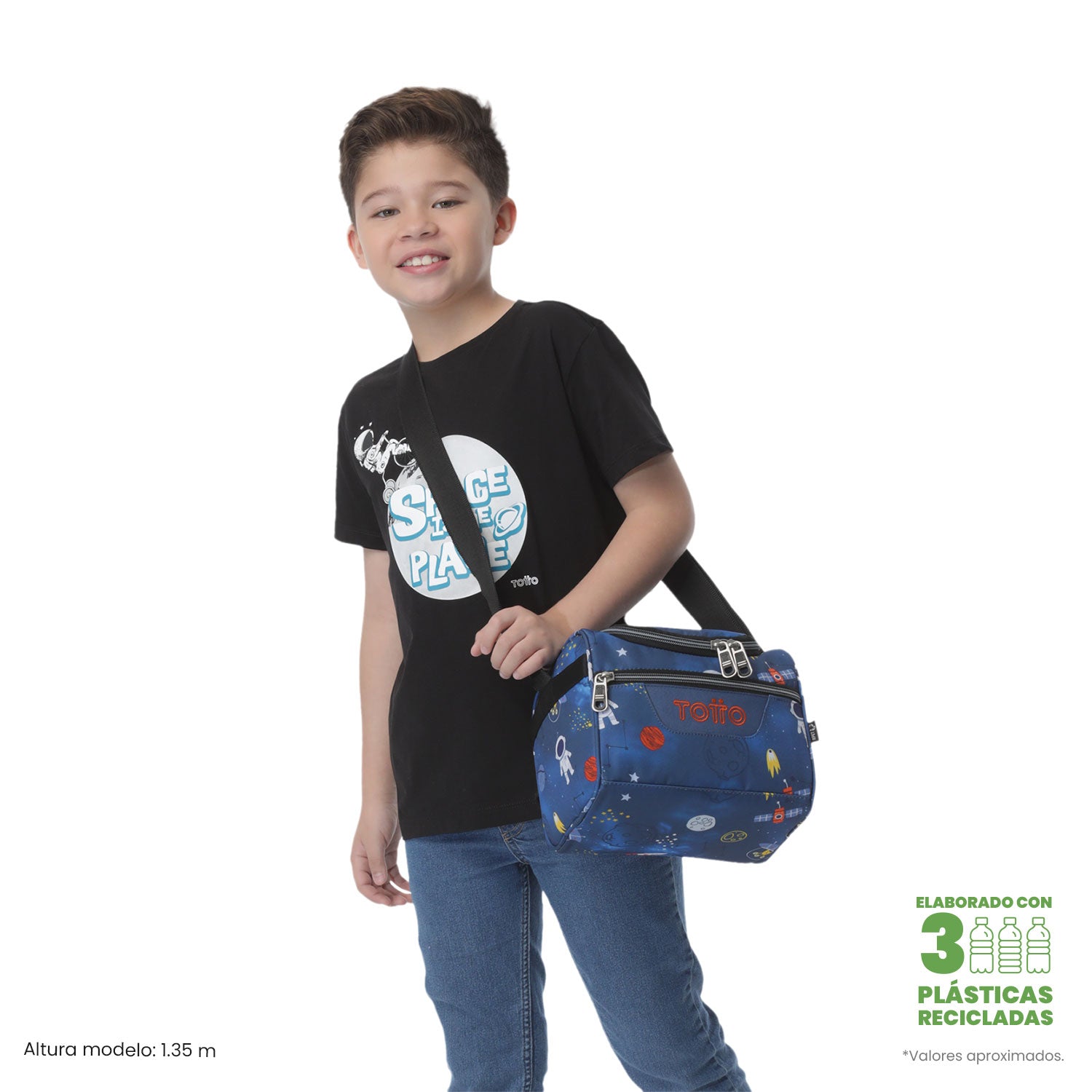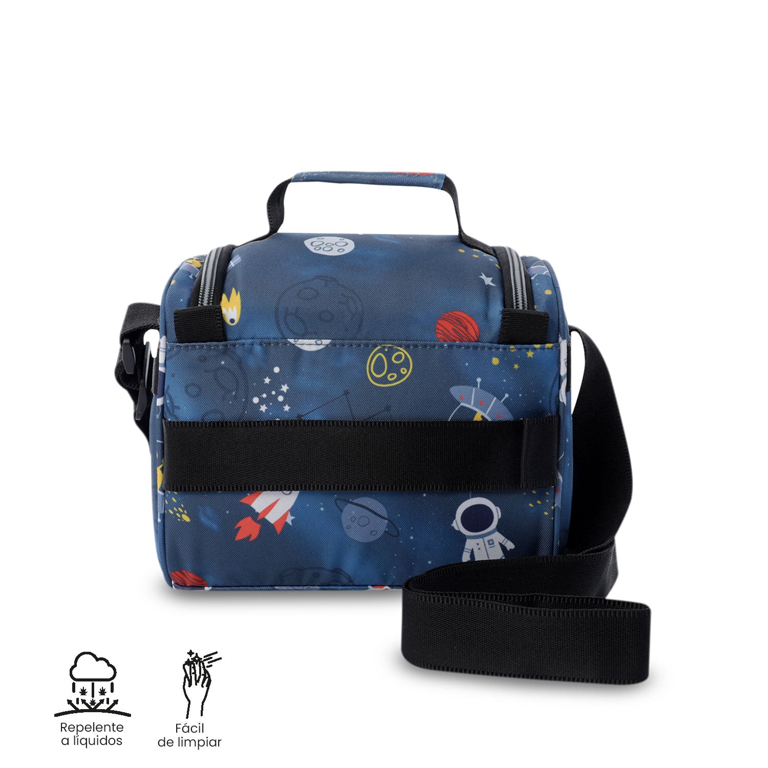 ¡Lleva tus comidas con total frescura con la lonchera Pizarra Azul Mundo Espacial! Su aislamiento térmico mantiene la temperatura hasta por 5 horas, ideal para cualquier jornada. Incluye bolsillo interno en malla, compartimento auxiliar, pasador para sistema de ruedas y correas ajustables para mayor comodidad. Fabricada con botellas recicladas RPET, es resistente, fácil de limpiar y repelente a líquidos. ¡Adquiérela hoy y combina funcionalidad con sostenibilidad.