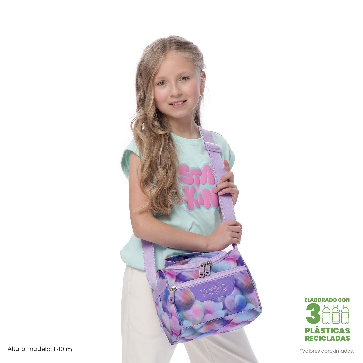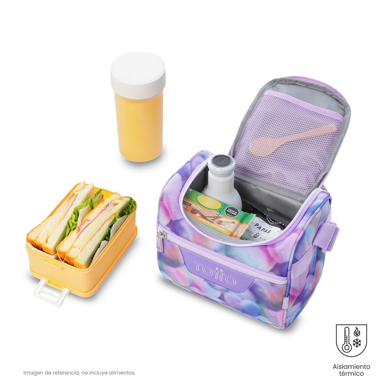 ¡Lleva tus comidas con total frescura con la lonchera Pizarra Morada diseño corazones. Su aislamiento térmico mantiene la temperatura hasta por 5 horas, ideal para cualquier jornada. Incluye bolsillo interno en malla, compartimento auxiliar, pasador para sistema de ruedas y correas ajustables para mayor comodidad. Fabricada con botellas recicladas RPET, es resistente, fácil de limpiar y repelente a líquidos. ¡Adquiérela hoy y combina funcionalidad con sostenibilidad.