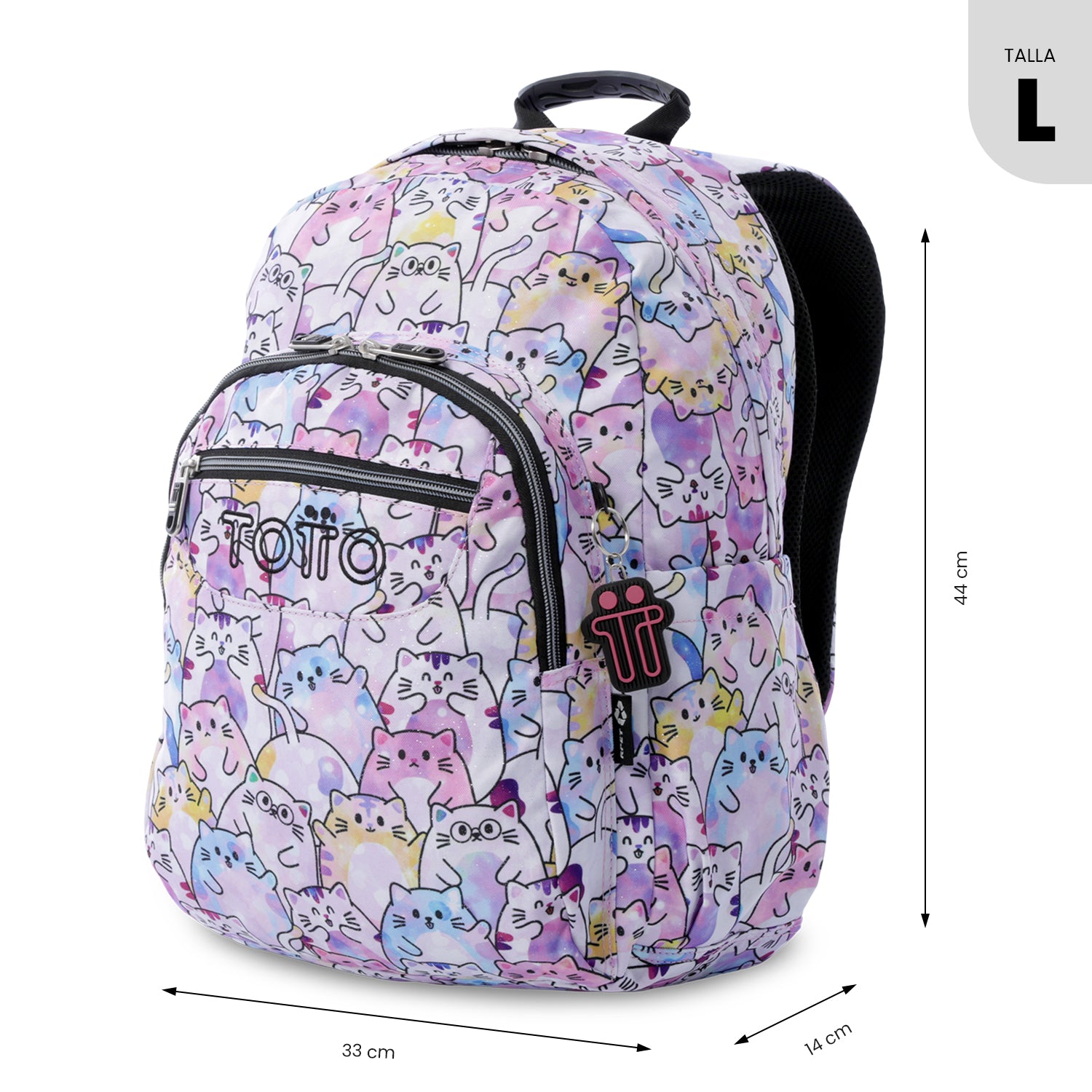 Mochila Juvenil Porta PC 14" Acuarela Glitter Gatitos Rosada